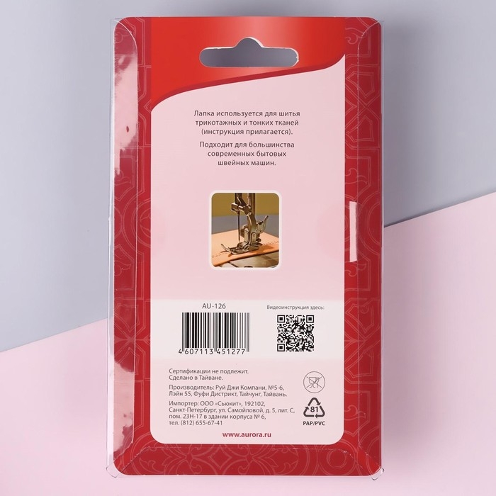 Лапка для швейных машин, для тонких тканей и трикотажа