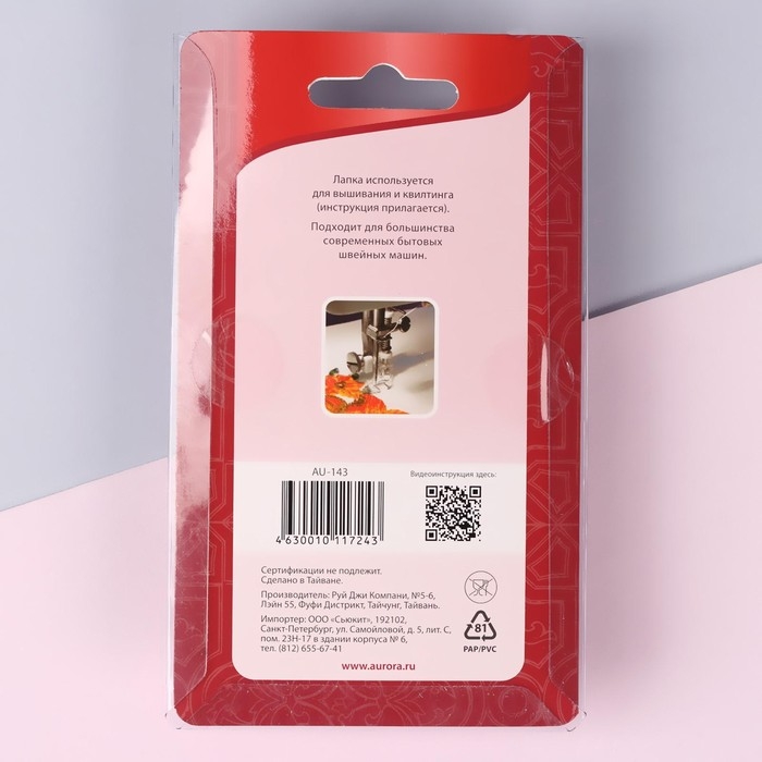 Лапка для швейных машин, для вышивания и квилтинга, 7 мм, AU-143