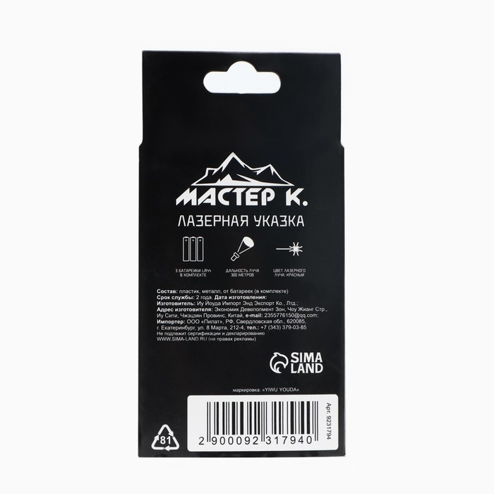 Лазерная указка "Мастер К", 4 режима, 3 LR44
