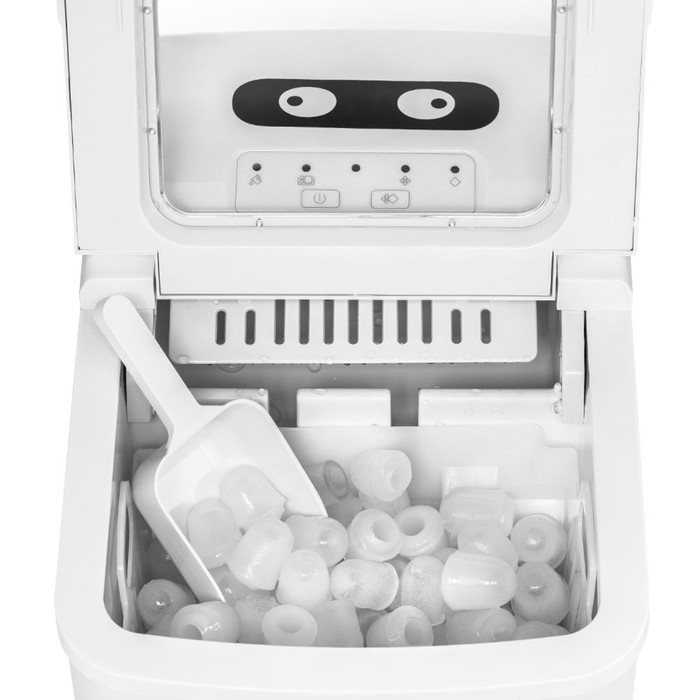 Благодаря инфракрасному датчику заполнения корзины, при её переполнении генерация льда автоматически прекращается. В случае, если лёд достали, льдогенератор запускает цикл заново, пока корзина не будет заполнена. В комплекте идёт совок для черпания льда.