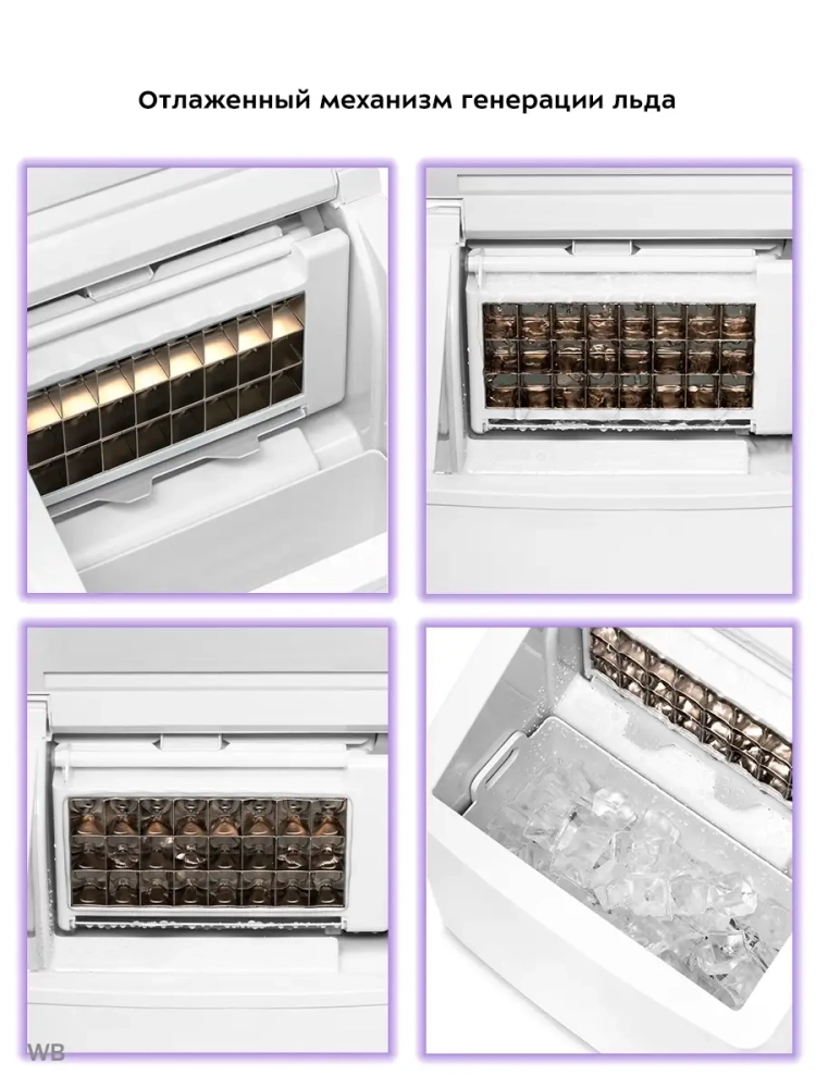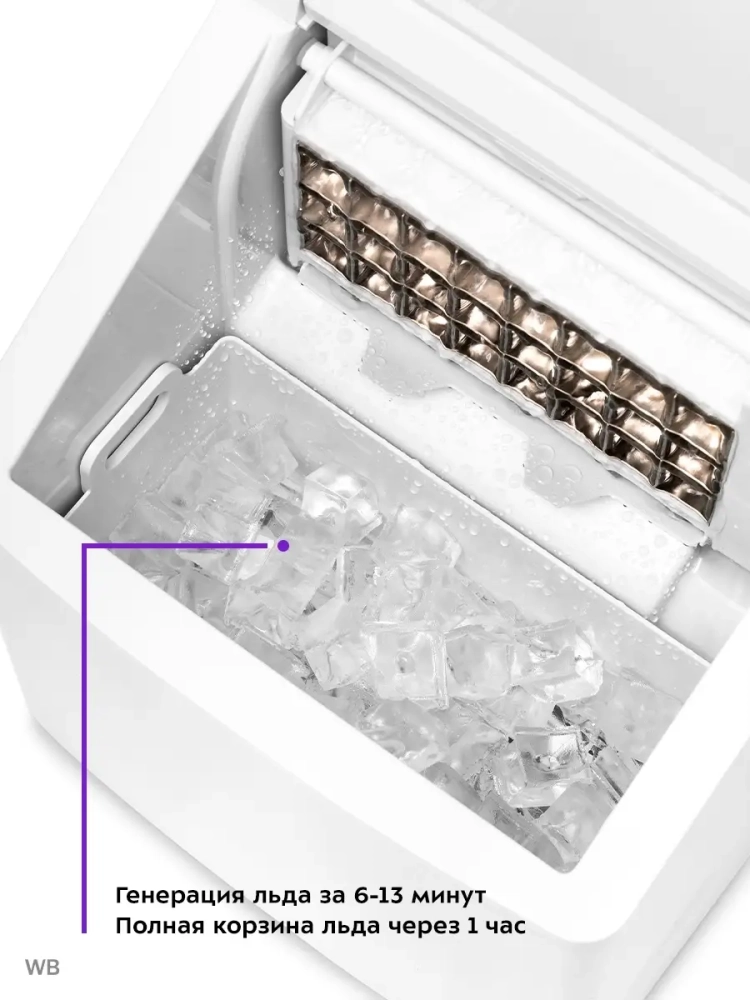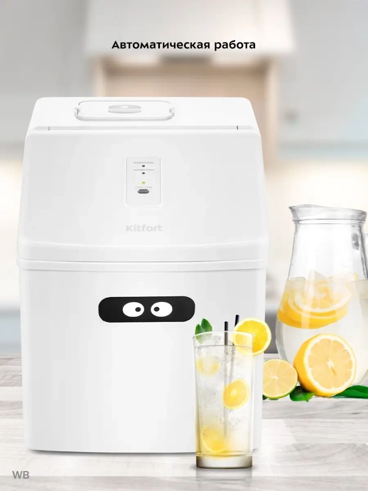 Льдогенератор Kitfort КТ-1815 - прибор, который быстро генерирует кубический лед, время приготовления льда занимает 6-13 минут. Лед получается в виде кубиков с углублением на одной из граней. Кубики объединены в плитку, которую можно разломать совком или руками. Полученные кубики льда хорошо измельчаются блендерами. Готовый лед автоматически складывается в специальную корзину. При ее переполнении генерация льда прекращается. Готовый лед не подмораживается, т.е. он постепенно тает, а т.к. стенки льдогенератора термоизолированные - лед тает довольно медленно. Охлаждение в приборе производится при помощи компрессора с хладагентом R600a по принципу обычного холодильника. Изобутан R600a является экологически чистым веществом, он не разрушает озоновый слой и не приводит к увеличению парникового эффекта. Количество хладагента всего 32 г. Вам достаточно просто залить чистую фильтрованную воду в резервуар и нажать на кнопку. Первая порция льда будет готова через 6-13 минут. Полная корзина льда будет готова примерно через 1 час. В комплекте идет совок для черпания льда. Большое преимущество льдогенератора состоит в том, что лед делается быстро. В обычной форме в морозилке лед замораживается полдня, а если его надо много, то нужно ставить несколько форм. Чтобы был запас льда, его нужно хранить в морозилке - пропадает ее полезный объем. Прибор можно использовать дома для приготовления охлажденных напитков, да и просто для охлаждения жидкостей. Например, для заваривания чая его нужно залить кипятком. А если хочется холодного чая, то один совок льда очень быстро его охлаждает. Можно добавлять лед в газированную воду, сок, воду, чай, кофе, молоко. Если вы любите коктейли, собираетесь часто с друзьями или просто любите выпить смузи со льдом - льдогенератор от Kitfort пригодится вам очень кстати.
