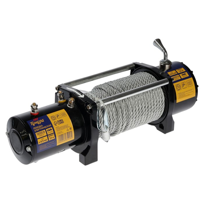 Лебедка электрическая ТУНДРА, 12/24V, 12000 lb (5.4 т), 6 л.с., до 7.8 м/мин, 9.5 мм х 24 м