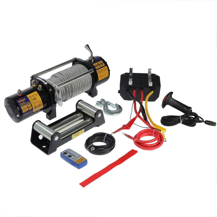 Лебедка электрическая ТУНДРА, 12/24V, 2000 lb (0.9 т), 1 л.с., до 3.2 м/мин, 4.8 мм х 12 м