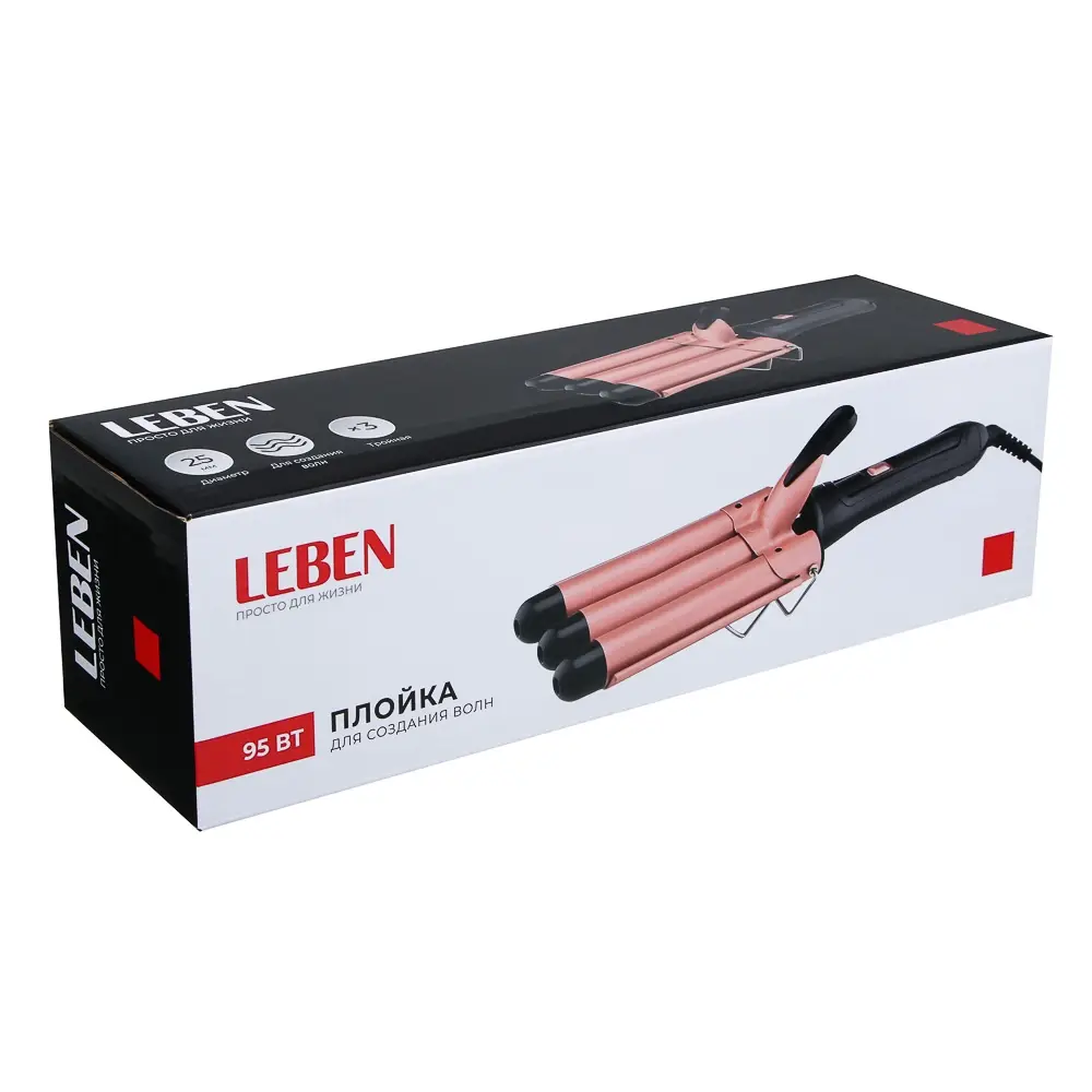 LEBEN Плойка для создания волн, тройная, укладка и завивка, диаметр 25мм, 95Вт, 220-240В