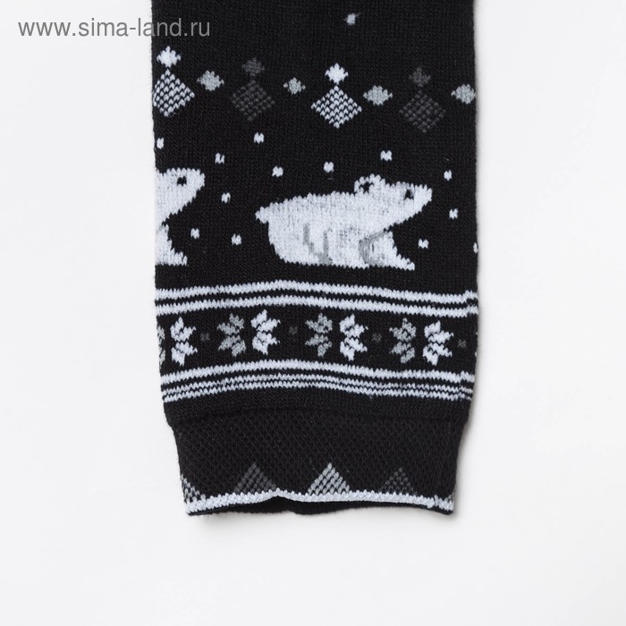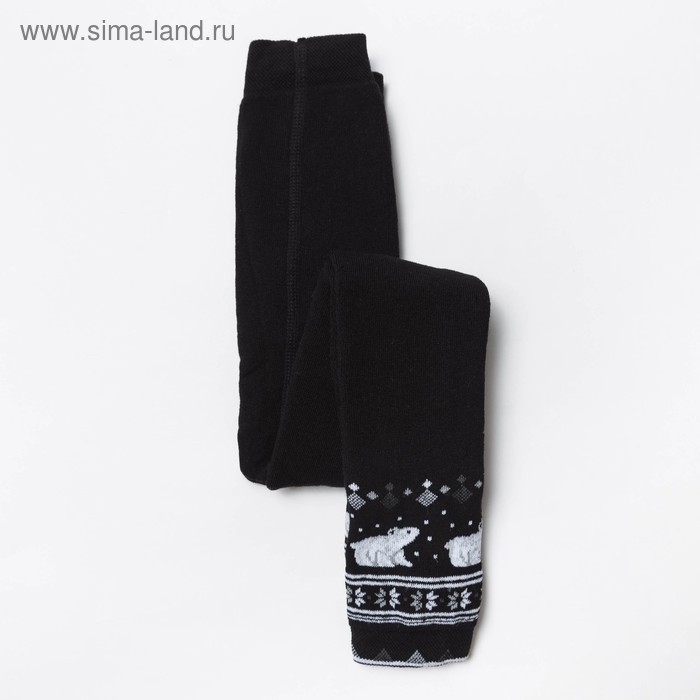 Леггинсы детские махровые «Орнамент с медведем», цвет чёрный, рост 104-110