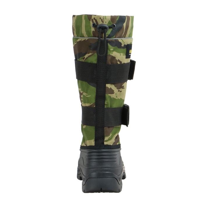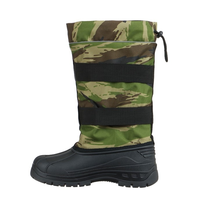 Легкие износостойкие сноубутсы - идеальный вариант для загородного отдыха, охоты и рыбалки. Верх сапог состоит из водостойкого полиэстера КАМО. Сапог имеет вкладной чулок из шерстяного меха, который за счет внешнего фольгированного слоя создает эффект термоса и держит тепло внутри сапога. Верх крепится к галоше из ТЭП строчечным методом крепления.