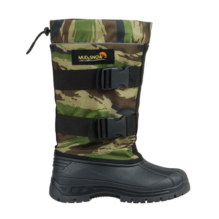 Легкие износостойкие сноубутсы - идеальный вариант для загородного отдыха, охоты и рыбалки. Верх сапог состоит из водостойкого полиэстера КАМО. Сапог имеет вкладной чулок из шерстяного меха, который за счет внешнего фольгированного слоя создает эффект термоса и держит тепло внутри сапога. Верх крепится к галоше из ТЭП строчечным методом крепления.