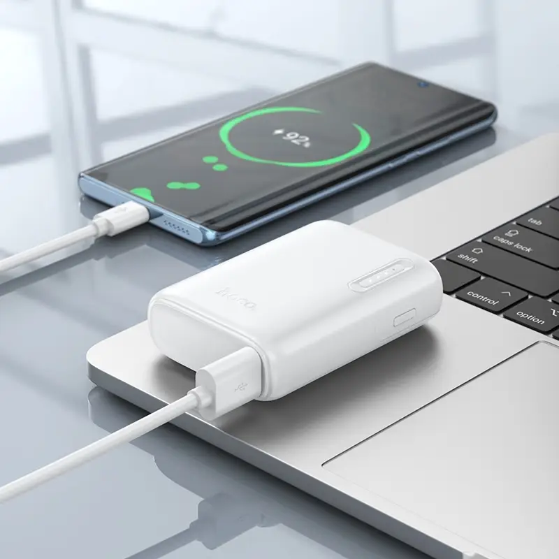 hoco J158 – маленький внешний аккумулятор с небольшой ёмкостью – 5000 mAh (3000 mAh - номинальная), его хватит на 1-2 раза полной зарядки смартфона. Благодаря небольшим размерам и маленькому весу его удобно брать с собой.