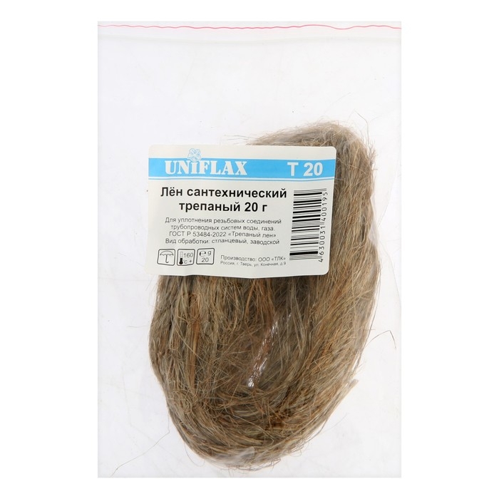 Сантехнический лён предназначен для герметизации резьбовых соединений в трубопроводных системах для горячей и холодной воды, а также сжатого воздуха или пара.