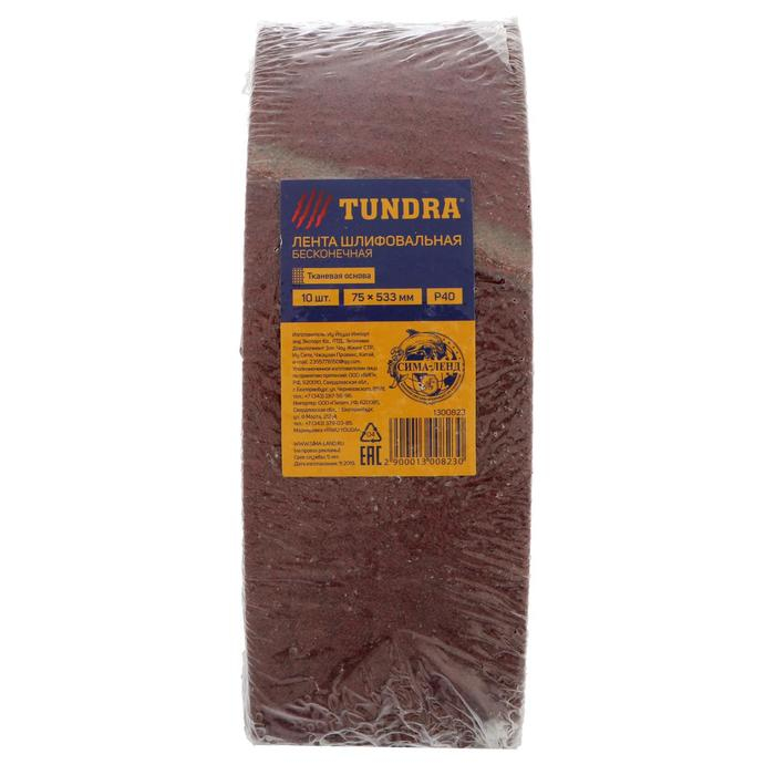 Лента абразивная бесконечная ТУНДРА, на тканевой основе, 75 х 533 мм, Р40, 10 шт.