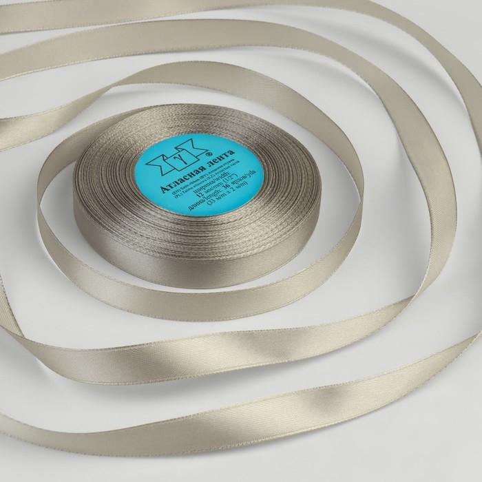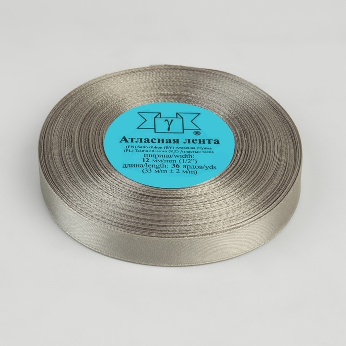 Лента атласная, 12 мм × 33 ± 2 м, цвет светло-серый №003
