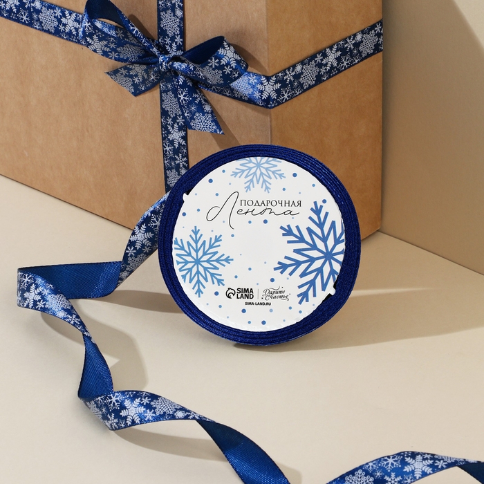 Лента атласная декоративная «Волшебные снежинки», 1,5 см × 5 м