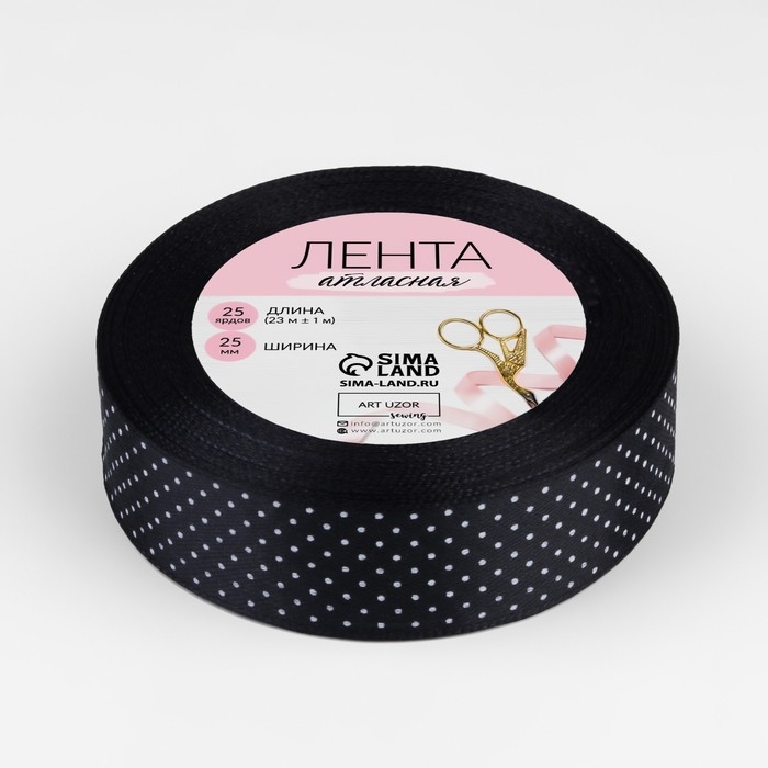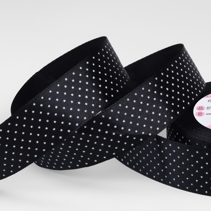 Лента атласная «Горошек», 25 мм × 23 ± 1 м, цвет чёрный №039