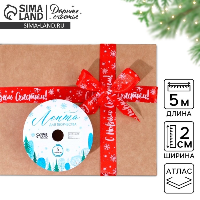 Лента атласная «Новогодняя», 2 см × 5 м