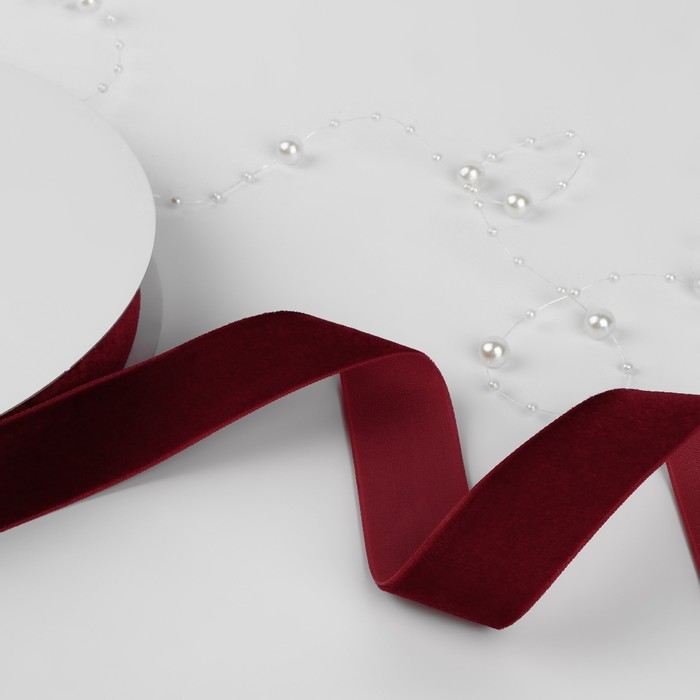 Лента бархатная, 25 мм, 18 ± 1 м, цвет бордовый №46