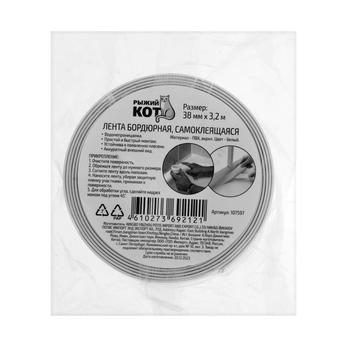 Лента бордюрная 107597, самоклеящаяся, акриловый клей, 3.2 м х 38 мм