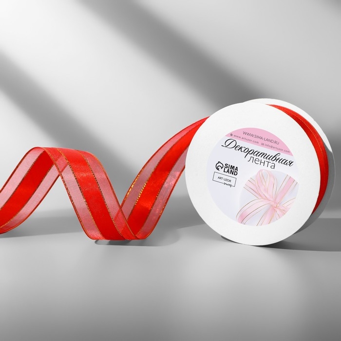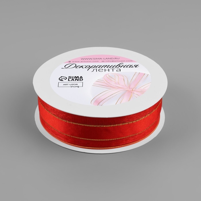 Лента декоративная, капроновая/атласная, с люрексом, 25 мм, 18 ± 1 м, цвет красный
