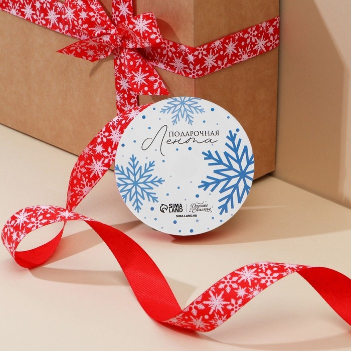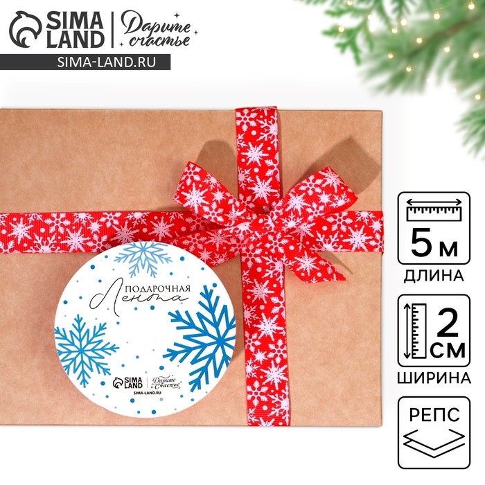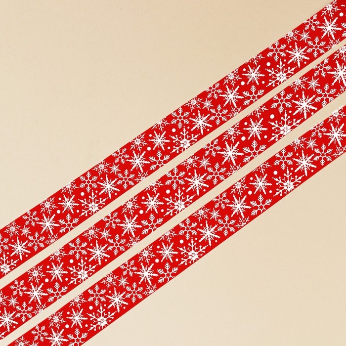 Лента декоративная репсовая «Белые снежинки», красная, 2 см × 5 м