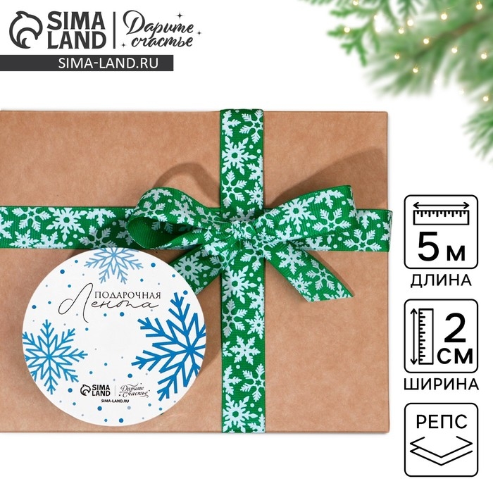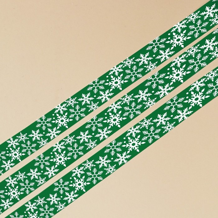Лента декоративная репсовая «Снежный вихрь», зеленая, 2 см × 5 м