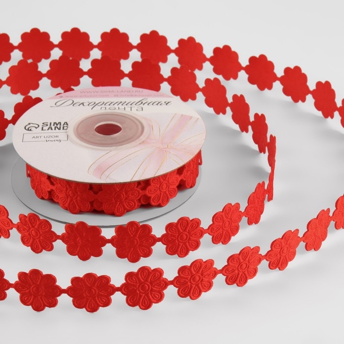 Лента фигурная «Цветок», 18 мм, 9 ± 0,5 м, цвет красный