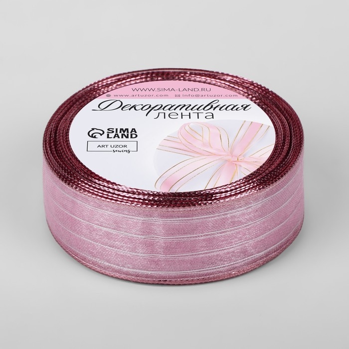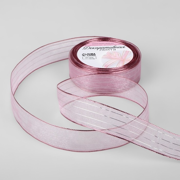 Лента капроновая, с люрексом, 25 мм × 9,1 ± 0,5 м, цвет розовый/серебряный