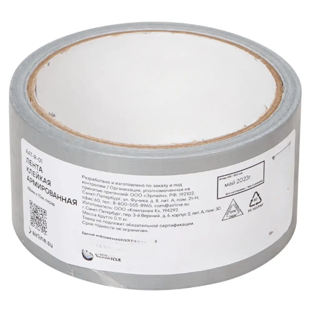 Лента клейкая армированная (скотч), 48 мм*10 м, серая