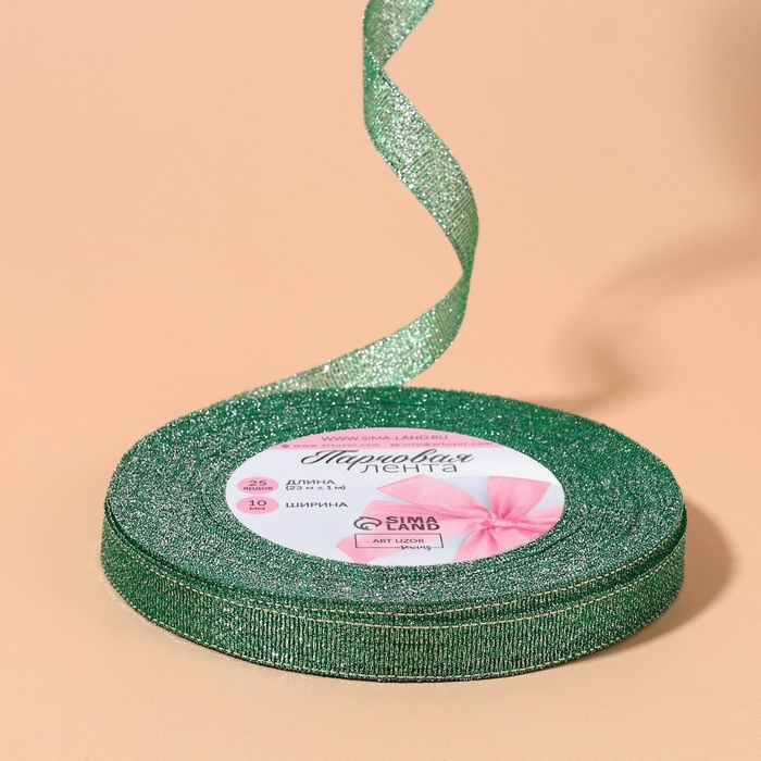 Лента парчовая, 10 мм, 23 ± 1 м, цвет зелёный №41