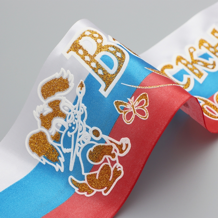 Лента "Выпускник детского сада", атлас триколор с годом 3D