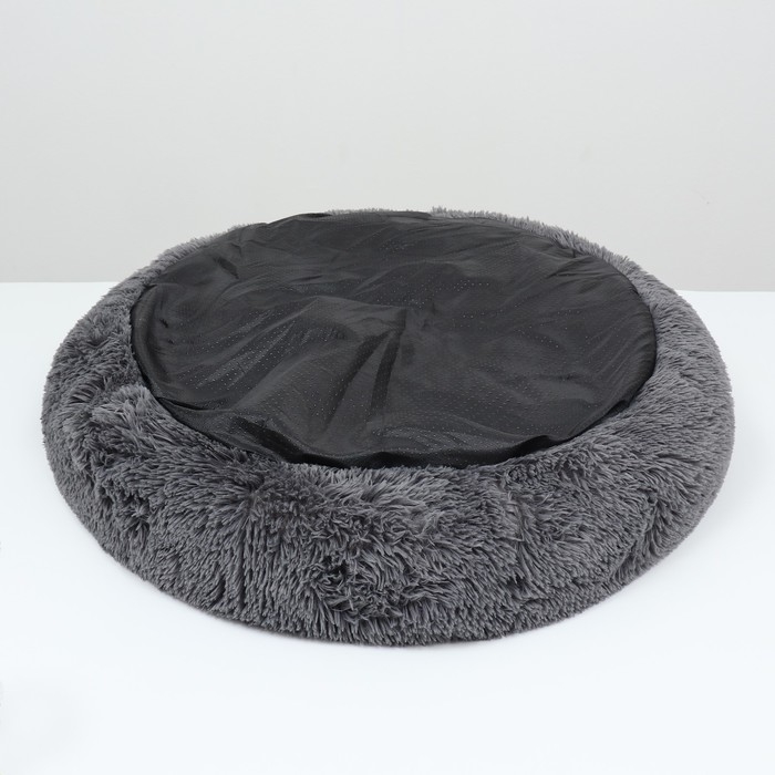 Лежанка для собак и кошек, длинный мех, 80 х 80 х 25 см, серая