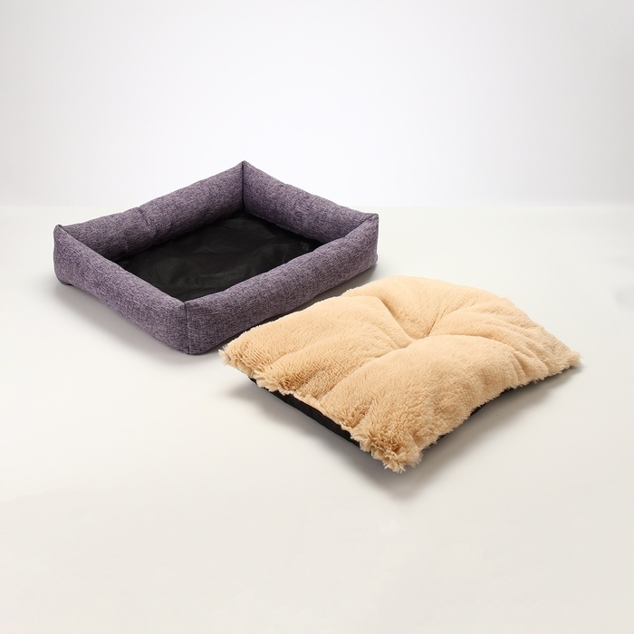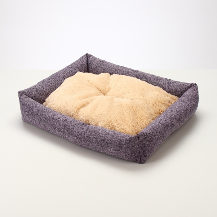 Лежанка для животных, 60 х 50 х 15 см, рогожка, искусственный мех, сиреневая