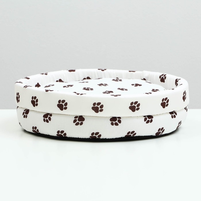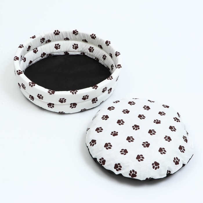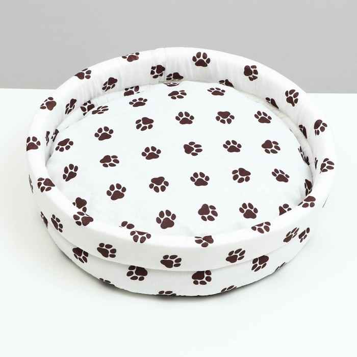 Лежанка Lowcost круглая, поплин, 40 х 40 х 12 см, белая с лапками