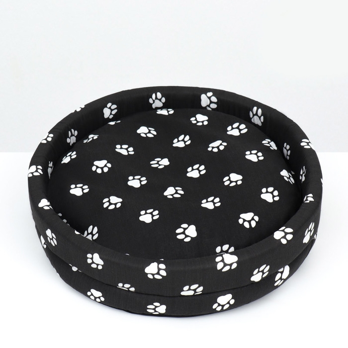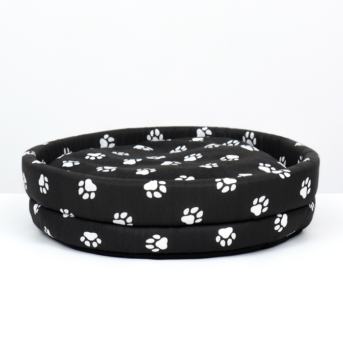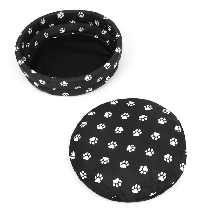 Лежанка Lowcost круглая, поплин, 40 х 40 х 12 см, черная с лапками