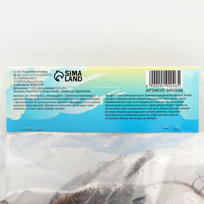 Лилейник Roswitha, многолетник, корневище в пакете с торфогрунтом, р-р I, 1 шт.