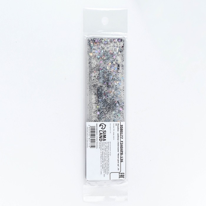 Линейка - шейкер с блёстками «Never give up», 15 см