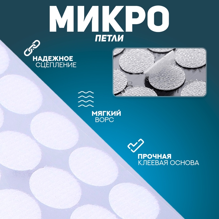 Липучка на клеевой основе «Круг», набор 30 шт., размер 1 шт: 2 см
