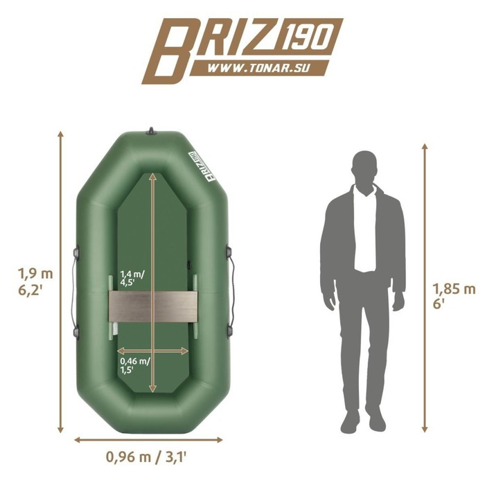 - длина лодки наибольшая: 1,90 м;