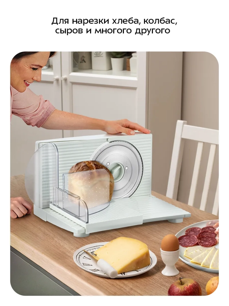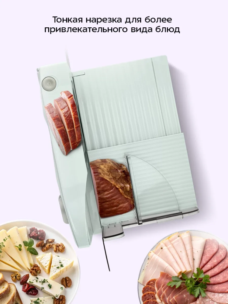 Ломтерезка Kitfort КТ-6810 предназначена для нарезки хлеба, овощей, фруктов, колбас, сыров, рыбы и готового мяса. С ее помощью можно быстро и аккуратно нарезать одинаковые ломтики для приготовления различных блюд. Тонко нарезанные продукты выглядят более аппетитно и делают даже простое блюдо интересным. Вы также можете подготовить овощи, фрукты или мясо для сушки в духовке или сушилке. С помощью ломтерезки вы существенно сократите время нарезки и получите ровные ломтики, добиться которых при нарезке обычным ножом очень непросто.