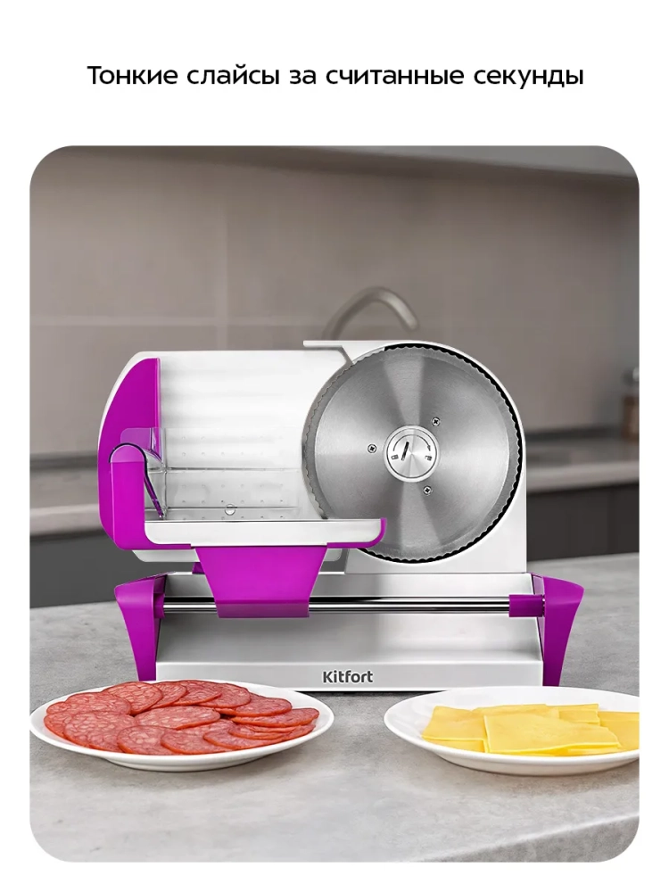 Ломтерезка Kitfort КТ-9956 предназначена для нарезки хлеба, овощей, фруктов, колбас, сыров, рыбы и готового мяса. С ее помощью можно быстро и аккуратно нарезать одинаковые ломтики для приготовления различных блюд. Тонко нарезанные продукты выглядят более аппетитно и делают даже простое блюдо интересным. Вы также можете подготовить овощи, фрукты или мясо для сушки в духовке или сушилке. С помощью ломтерезки вы существенно сократите время нарезки и получите ровные ломтики, добиться которых при нарезке обычным ножом очень непросто.