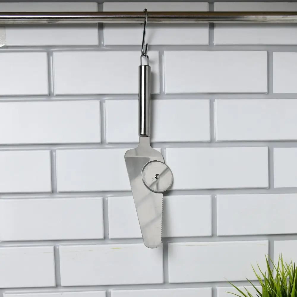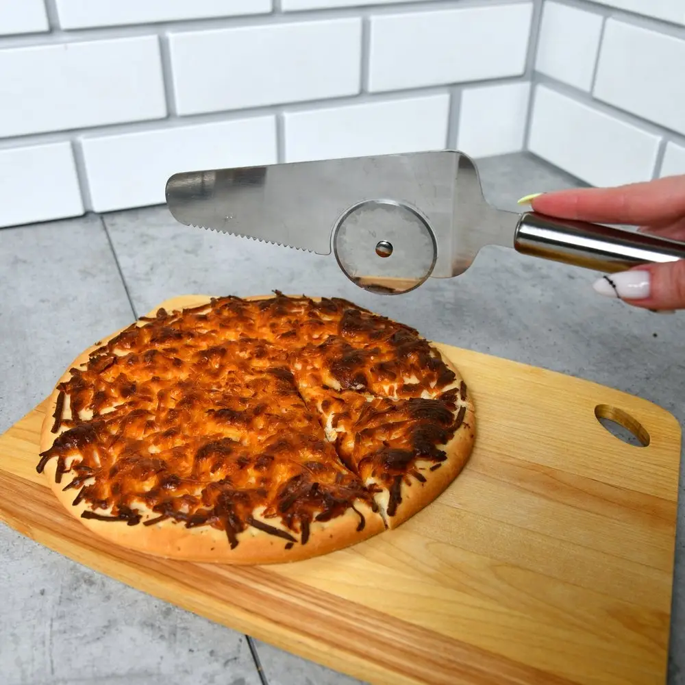 Семейный ужин, бизнес-ланч с коллегами или дружеская вечеринка любителей пиццы не обойдутся без этого интересного приспособления! 2 в 1- ролик для нарезки пиццы поможет без труда разделить пиццу на ровные кусочки, а лопатка позволит разложить порционные кусочки, не запачкав руки. Общая длина 27см.