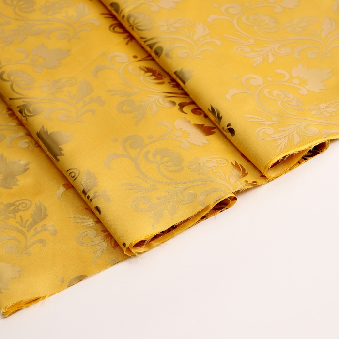 Лоскут атласа бежевого цвета с золотым узором отлично подойдёт для рукоделия и создания уникальных изделий. Этот материал сочетает в себе блеск и элегантность, что позволяет создавать как одежду, так и декоративные элементы, которые будут выделяться.