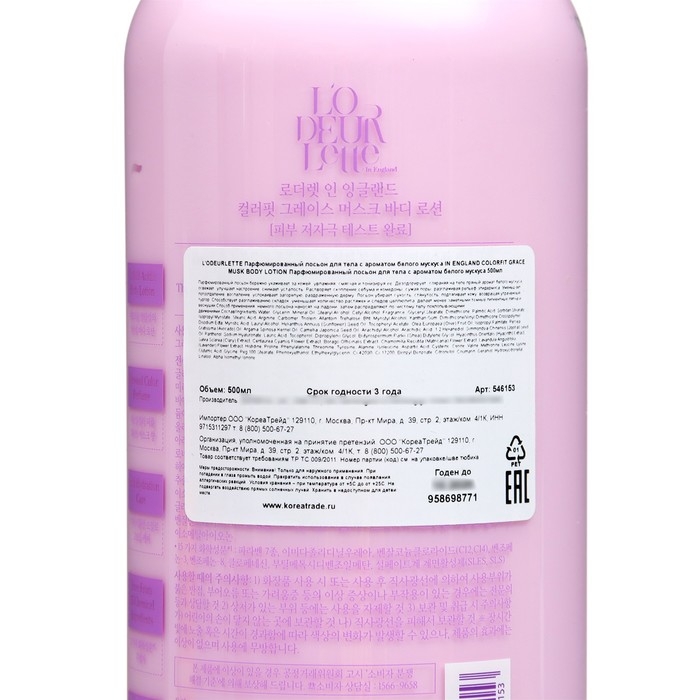 Лосьон для тела L'odeurlette In England c ароматом белого мускуса, 500 мл