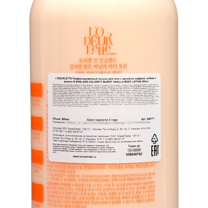 Лосьон для тела L'odeurlette In England c ароматом шафрана, имбиря и ванили, 500 мл