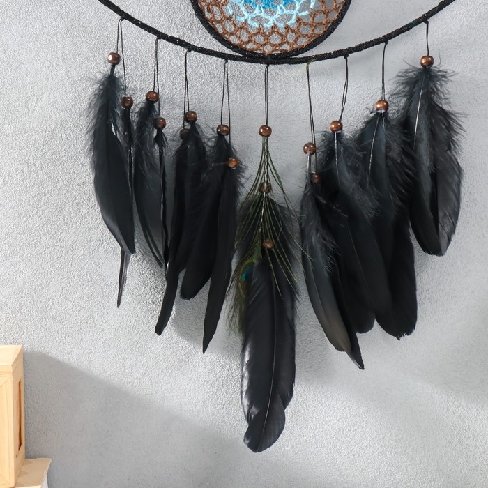 Ловец снов "Глаз от сглаза с пером павлина" чёрный 30х60 см