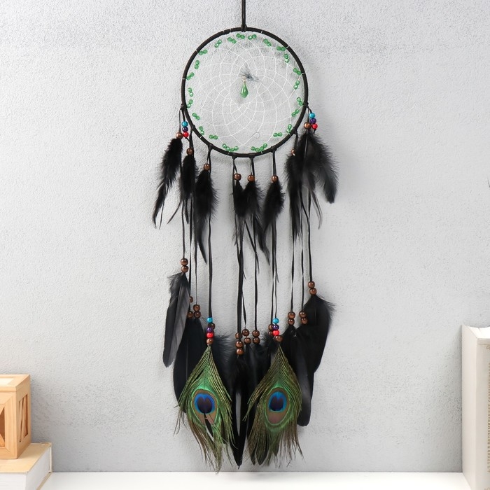 Ловец снов "Круг. Перья павлина" d=17 см 17х74 см