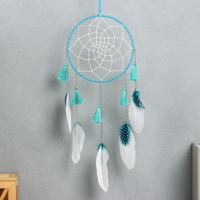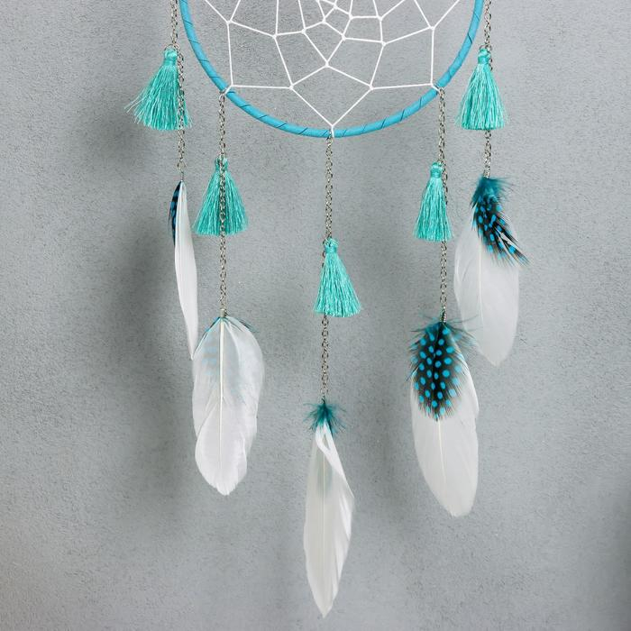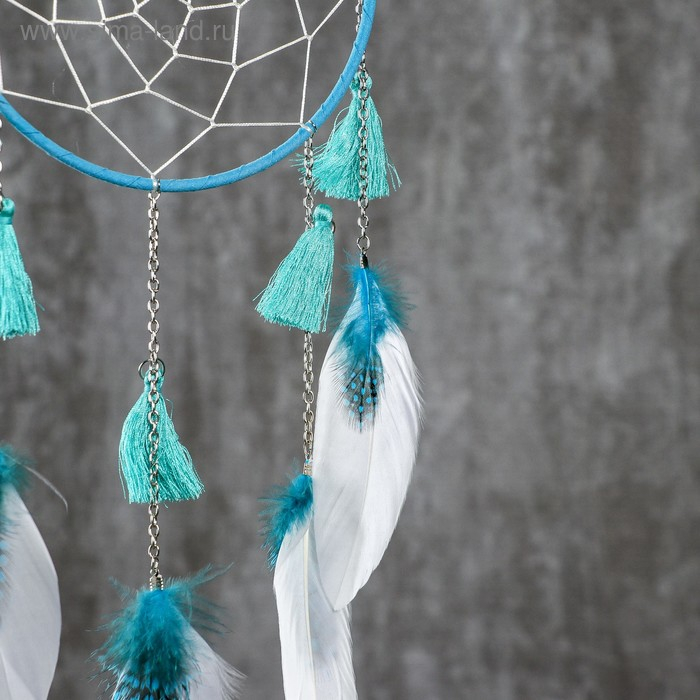 Ловец снов "Паутинка с кисточками, бирюзовый" 40х15 см