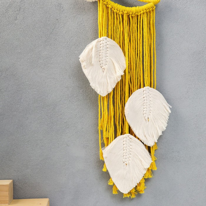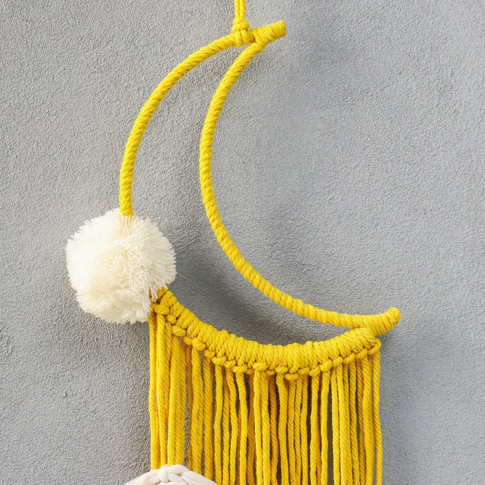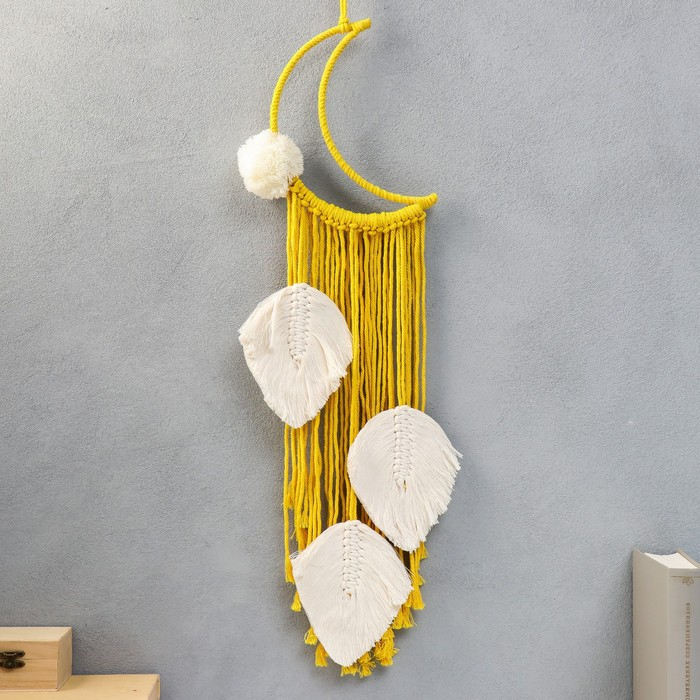 Ловец снов в технике макраме "Месяц и листочки" тёплый жёлтый 75х20 см