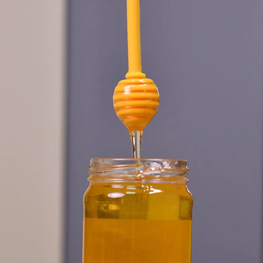 Поскольку правильный мёд не капает, а тянется, обычная ложечка здесь не уместна! Ложечка для меда — необходимый аксессуар, с ее помощью можно зачерпнуть жидкий мед, при это сохранив поверхность стола и края банки чистыми. Ложка представляет собой палочку из силикона, на одном конце которой утолщение с горизонтальными углублениями, похожее на веретено. На другом конце — удобный мини-шпатель, с помощью которого вы сможете равномерно распределить тягучий десерт по булке, хлебу или другой поверхности. Ложка удобна в использовании: опустите ее в банку, накрутите струйку меда и перенесите, понемногу поворачивая, затем поднесите к кусочку булки и «размотайте» прямо на нее. В процессе использования может исчезнуть яркость цвета, но не влияет на качество изделия. Можно мыть в посудомоечной машине.
