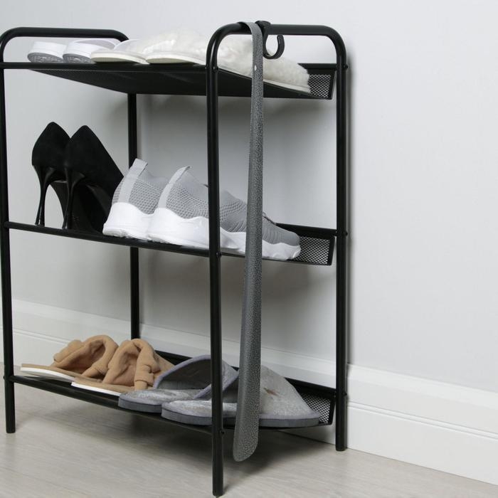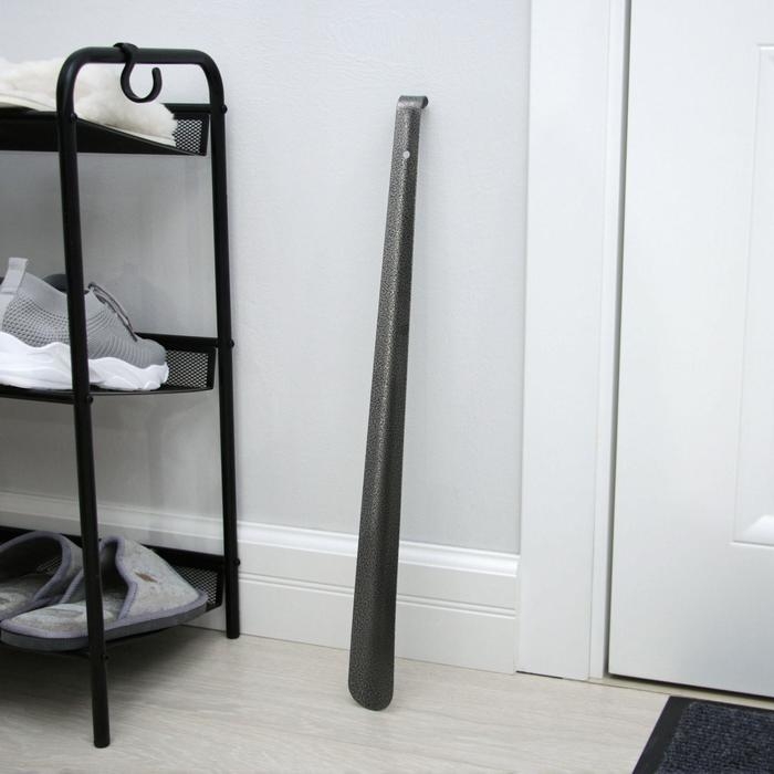 Ложка для обуви с крючком, 56,5×4,5 см, металл, цвет МИКС