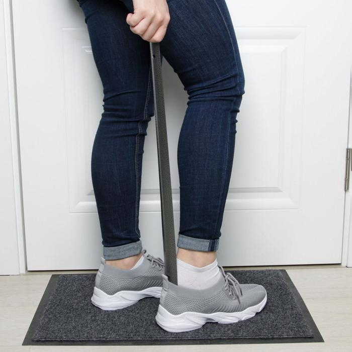 - Вставьте длинный рожок для обуви в задник и медленно опускайте стопу в ботинок. Это поможет избежать натирания и их деформации, а также значительно сэкономит ваше время.