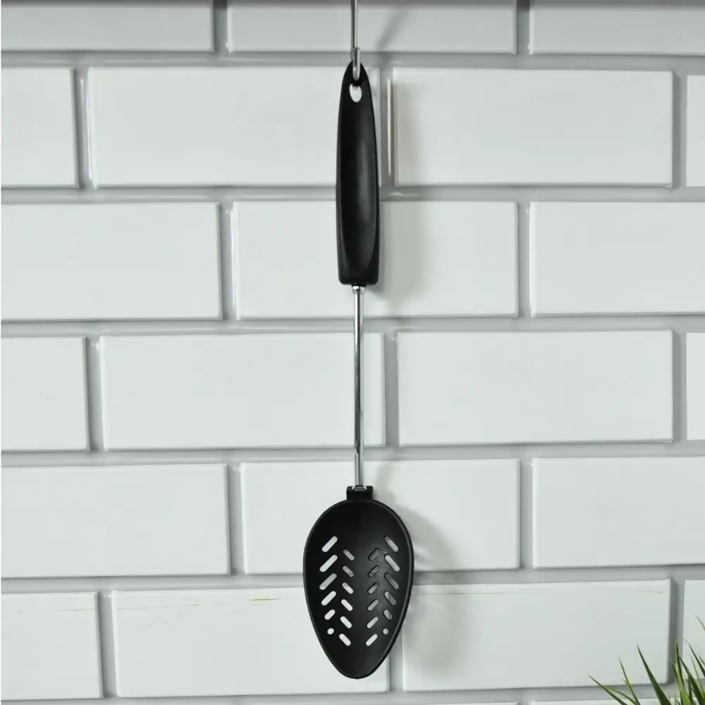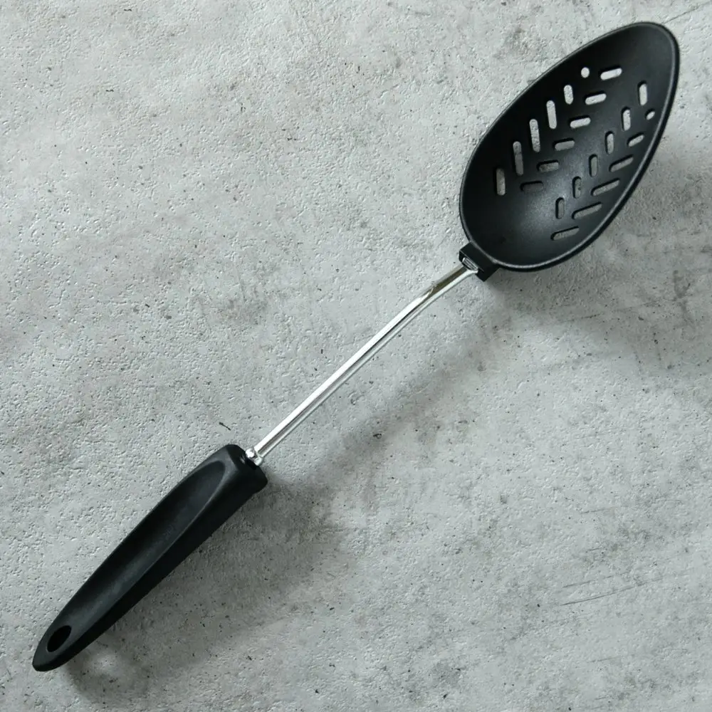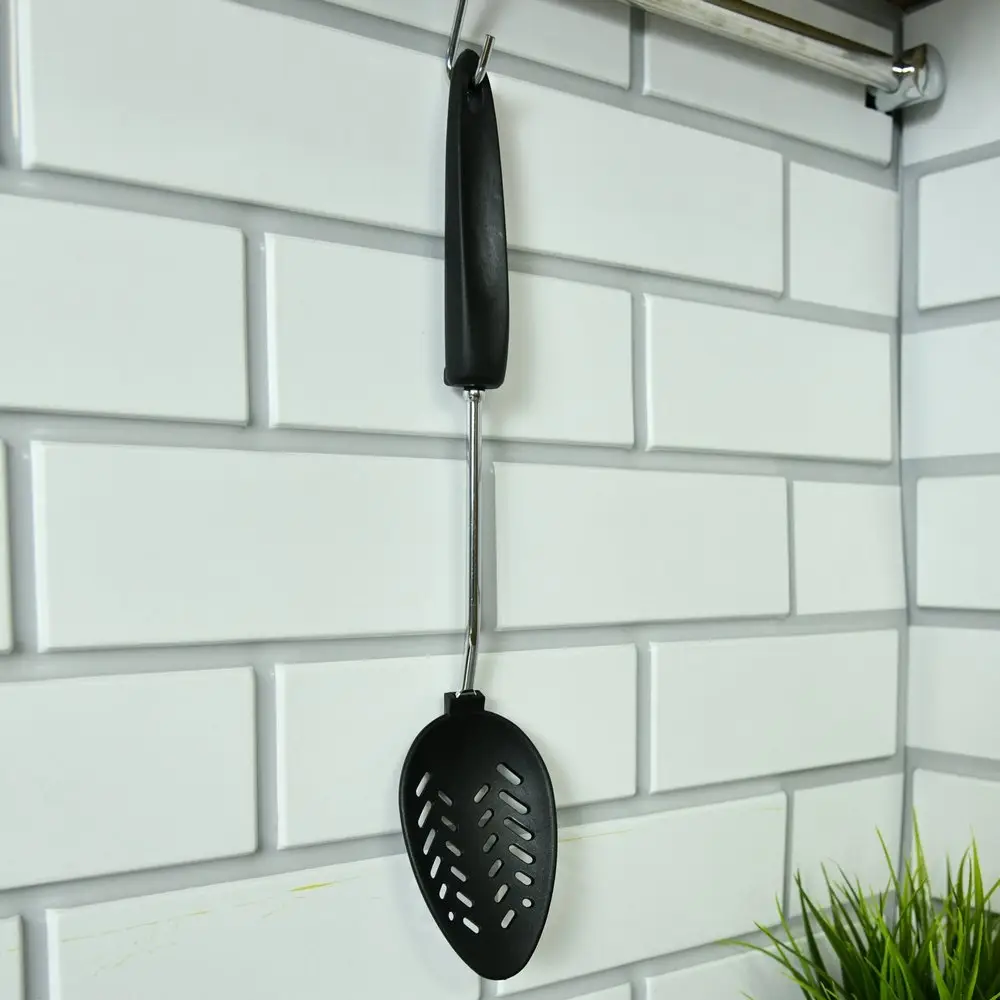 Ложка-шумовка — отличное приспособление для снятия пены с готовящихся бульонов, варенья и других блюд. Мелкие отверстия пропускают жидкость, при этом удерживают пену. Шумовка может использоваться также для раскладывания пельменей или вареников на тарелки. Ложка удобна в использовании, рабочая часть изготовлена из пластмассы (нейлона), ручка из хромированной стали и пластмассы. После использования вымойте с жидкими моющими средствами.